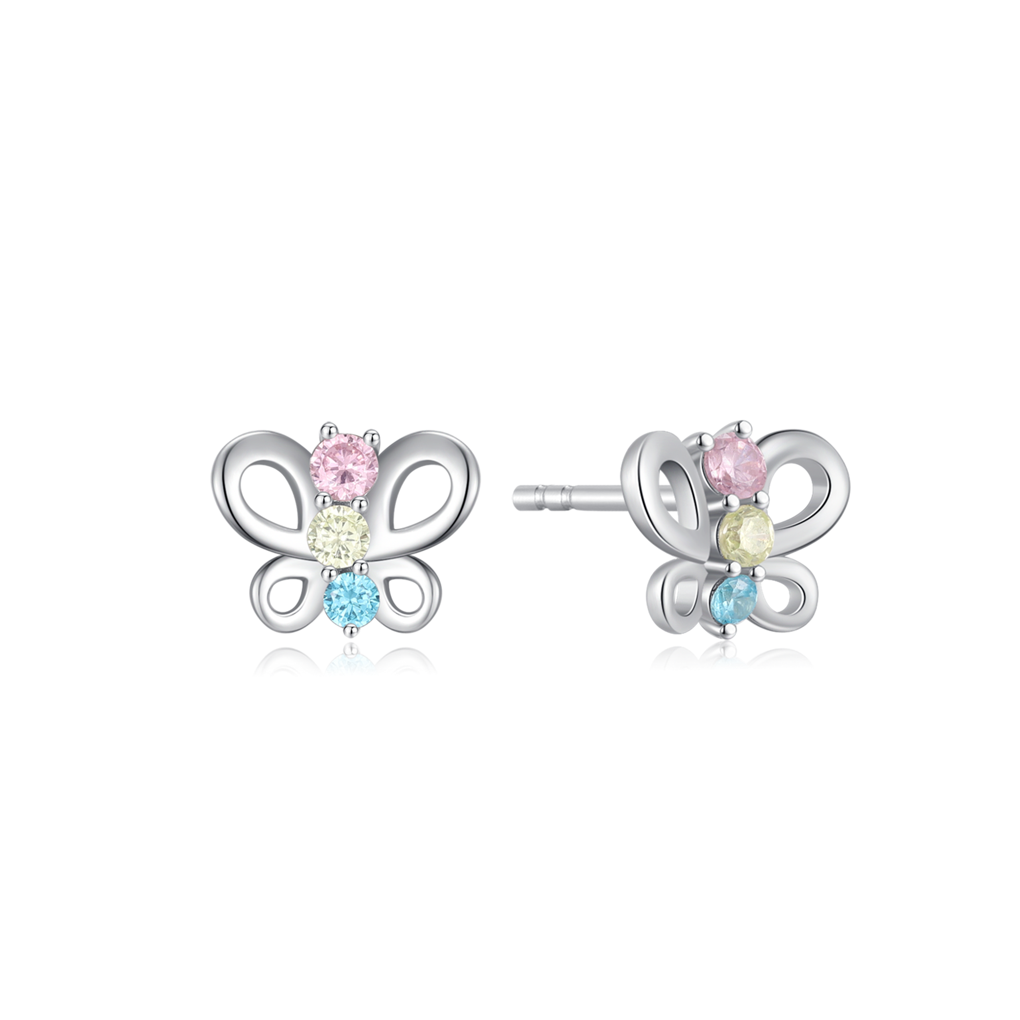 Sølv ørestikker rhodineret sommerfulg med syntetiske cubic zirconia i farver på kroppen.