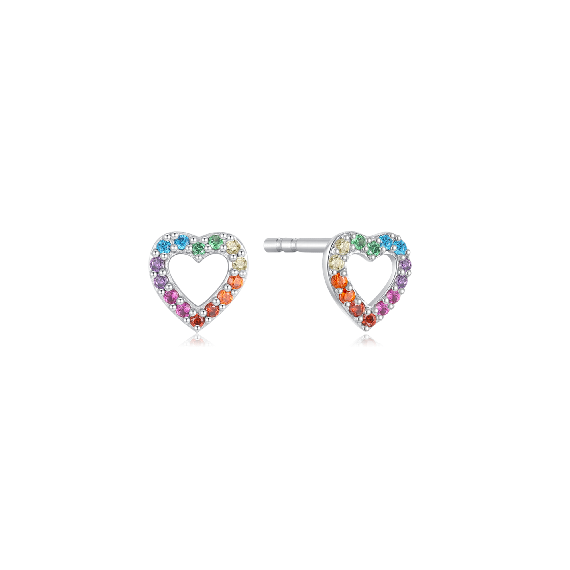 Sølv ørestikker rhodineret hjertel med multifarver syntetiske cubic zirconia rundt om kanten.