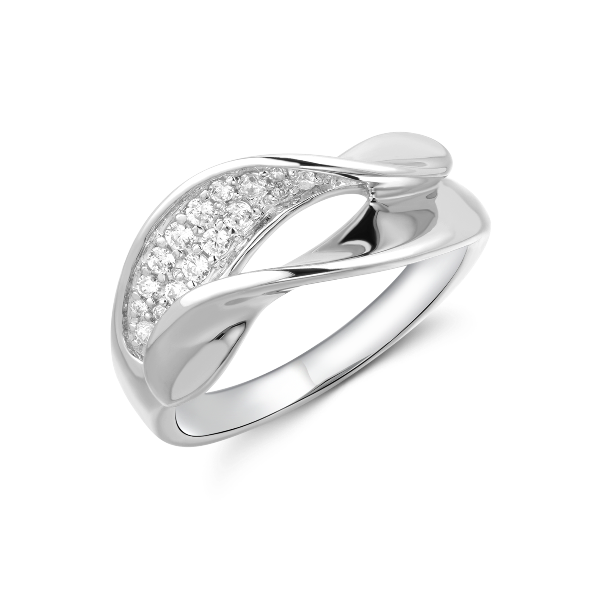 Sølv ring rhodineret skæv blad med syntetiske cubic zirconia.