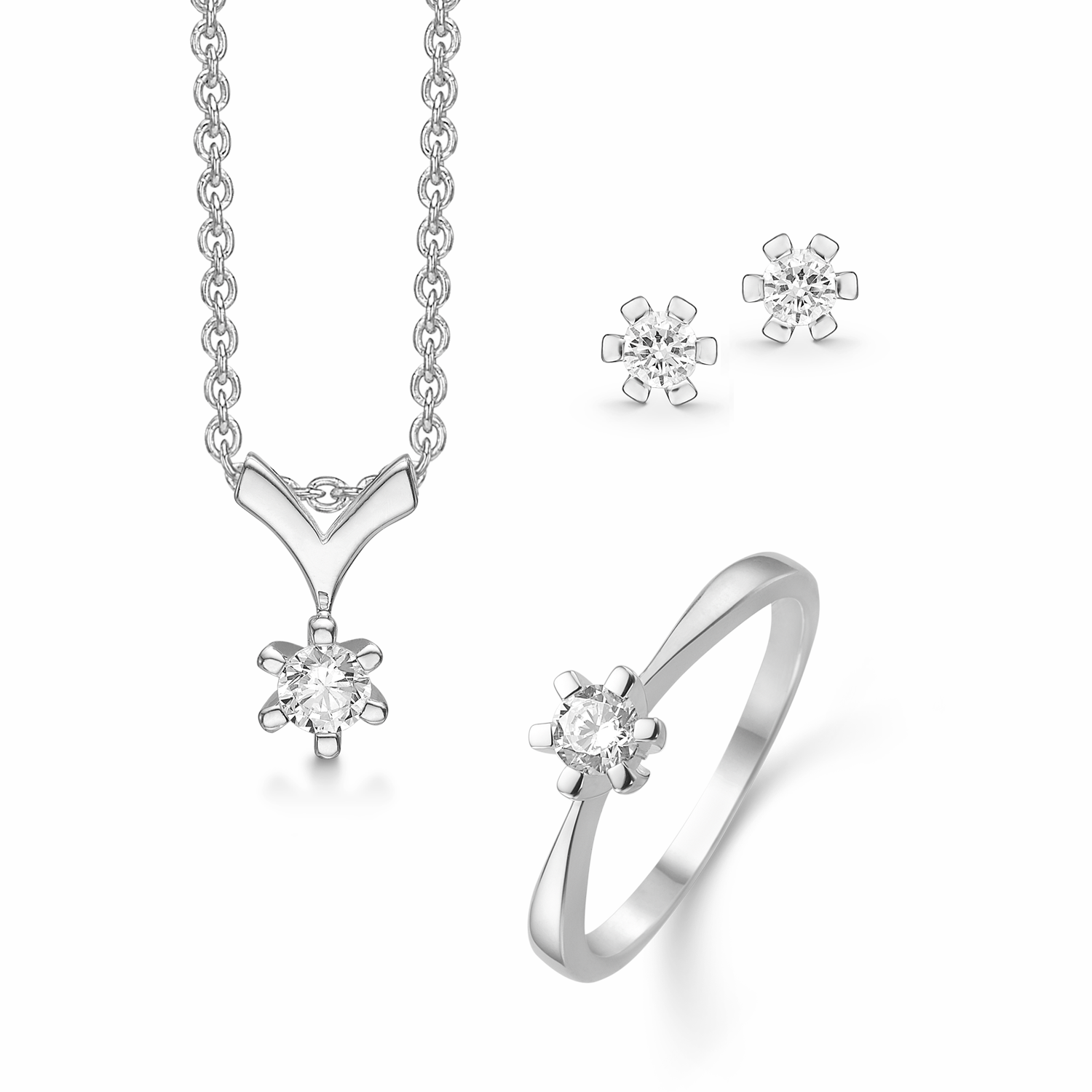 Sølv smykkesæt rhodineret med synetisk cubic zirconia i 6 grabber.