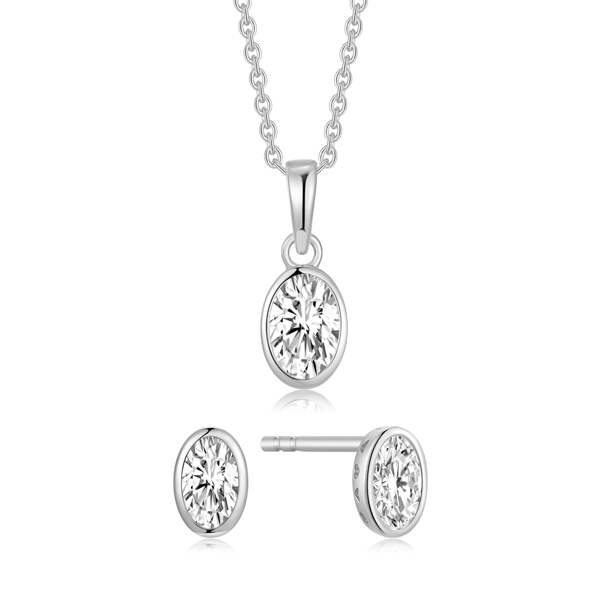 Sølv smykkesæt oval med en syntetisk cubic zirconia.
