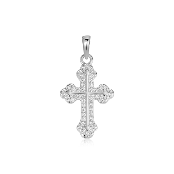 Sølv vedhæng rhodineret kors med syntetiske cubic zirconia.