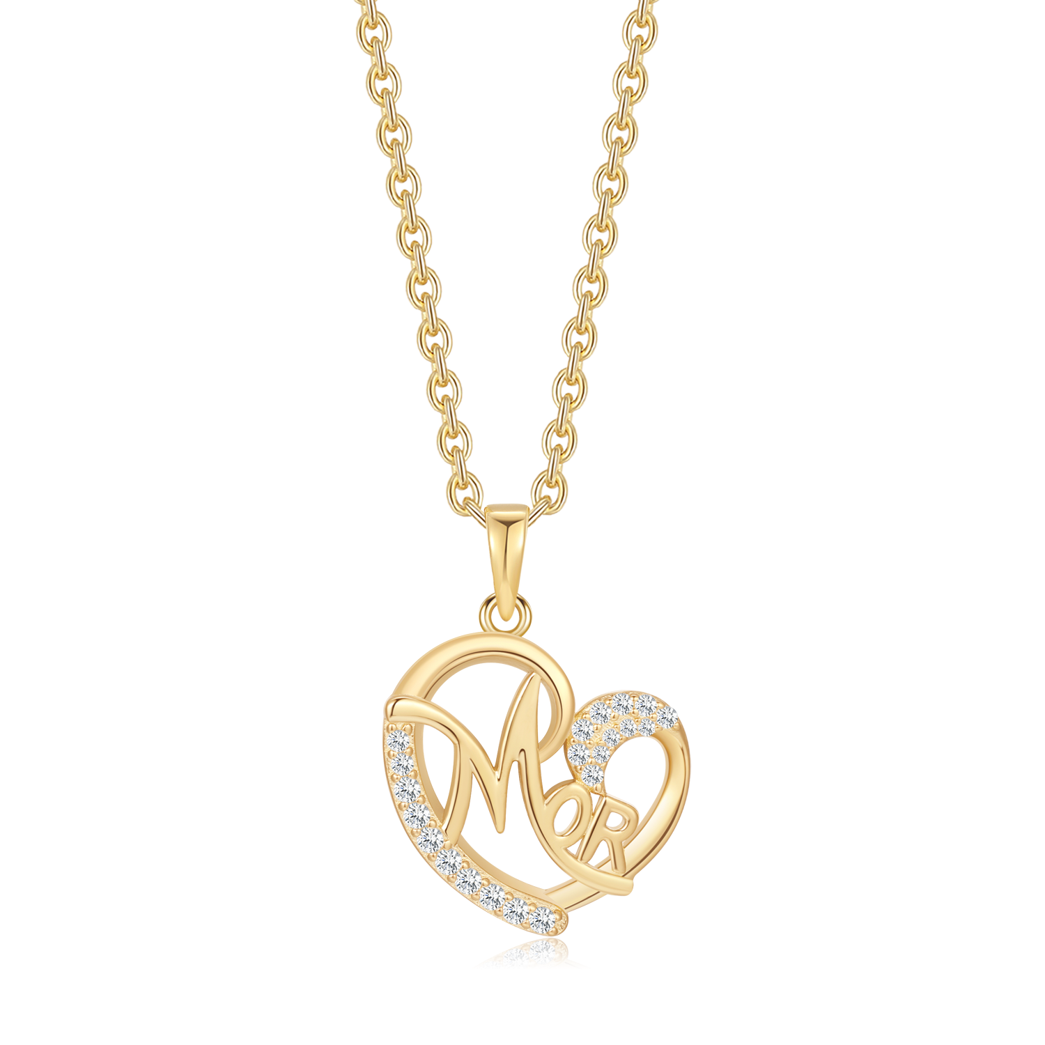 Sølvforgyldt halskæde hjerte "Mor"med syntetiske cubic zirconia.