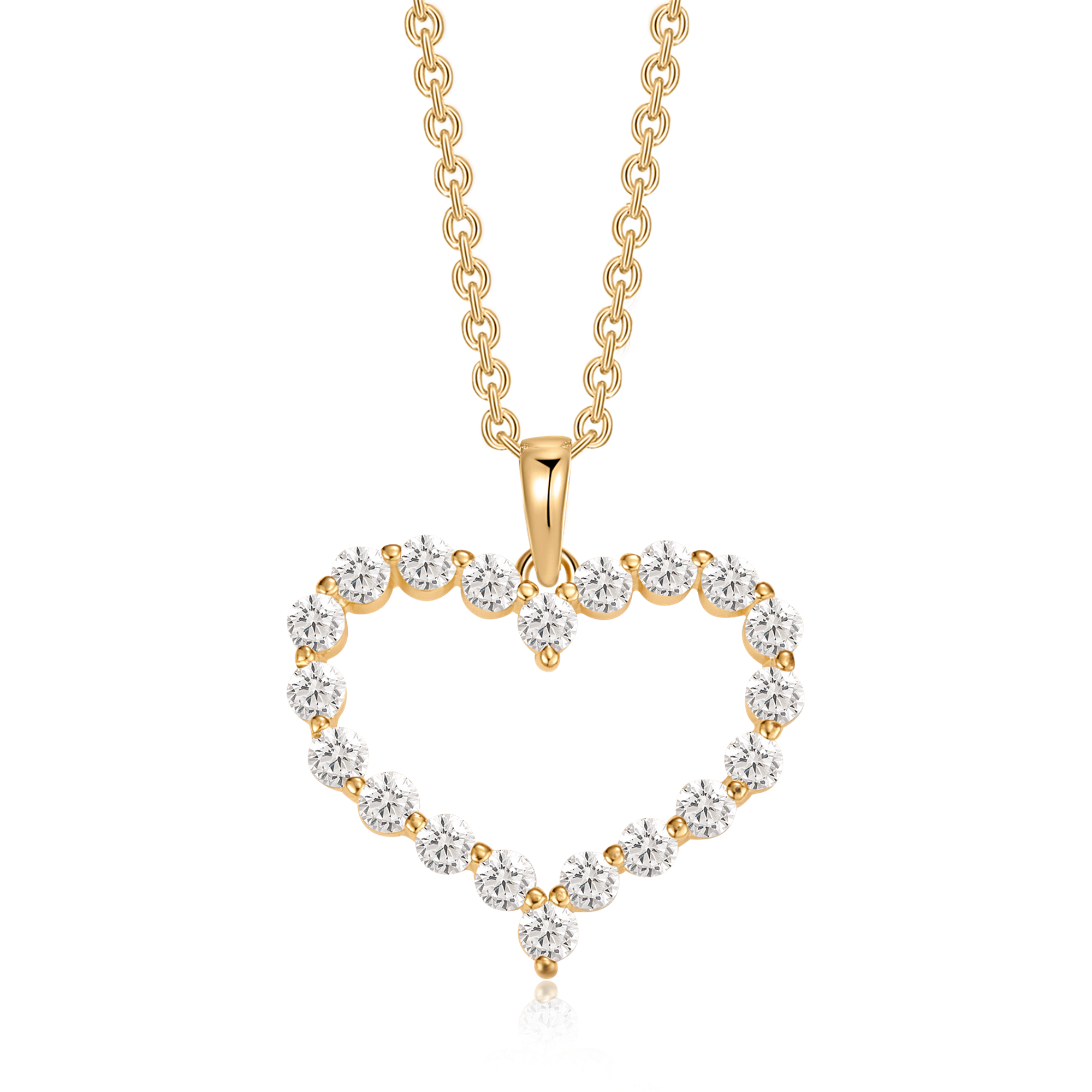 Sølvforgyldt halskæde hjerte med syntetiske cubic zirconia rundt om kanten.