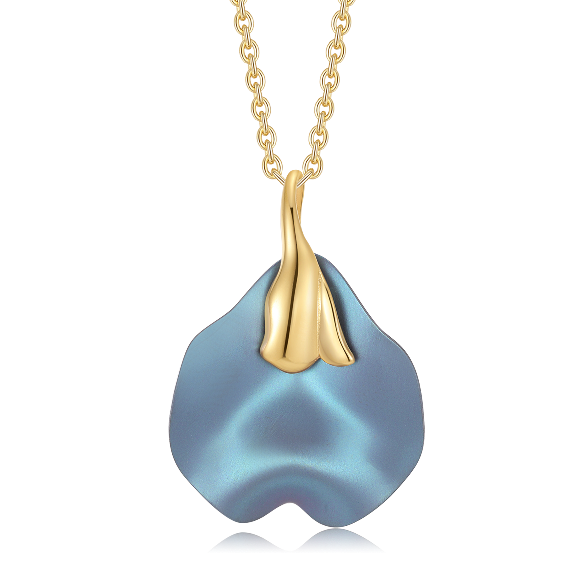 Sølvforgyldt halskæde blomst med blå jens titanium.