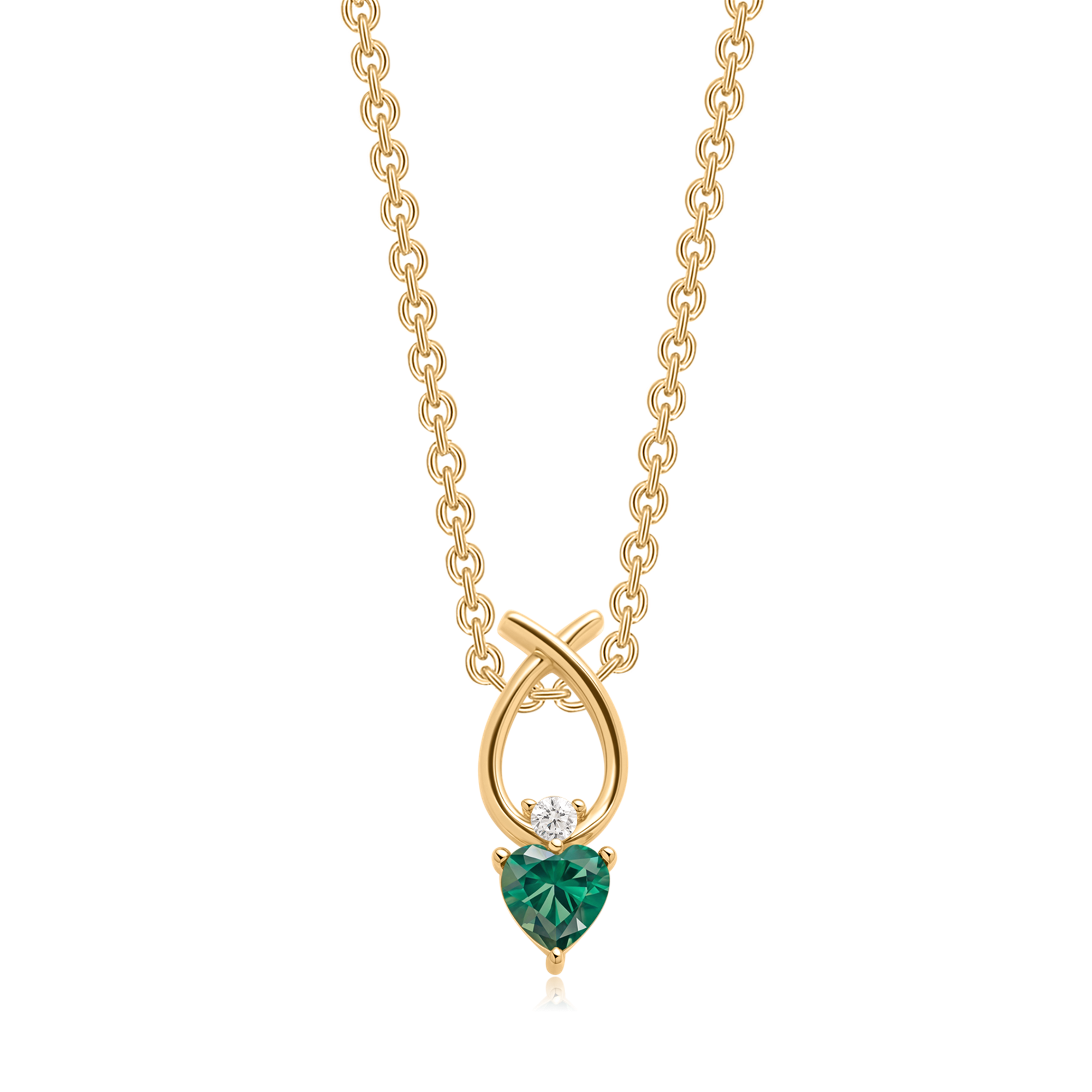 Sølvforgyldt halskæde flettet oval med syntetisk smaragd og en syntetiske cubic zirconia.