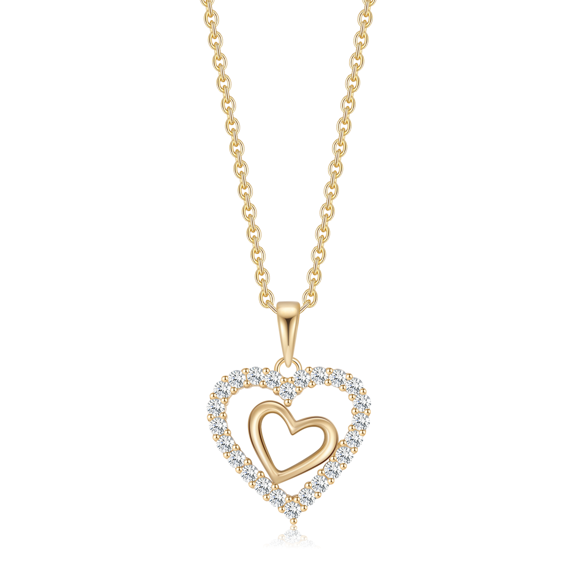 Sølvforgyldt halskæde dobbelt hjerte med syntetiske cubic zirconia i kanten.