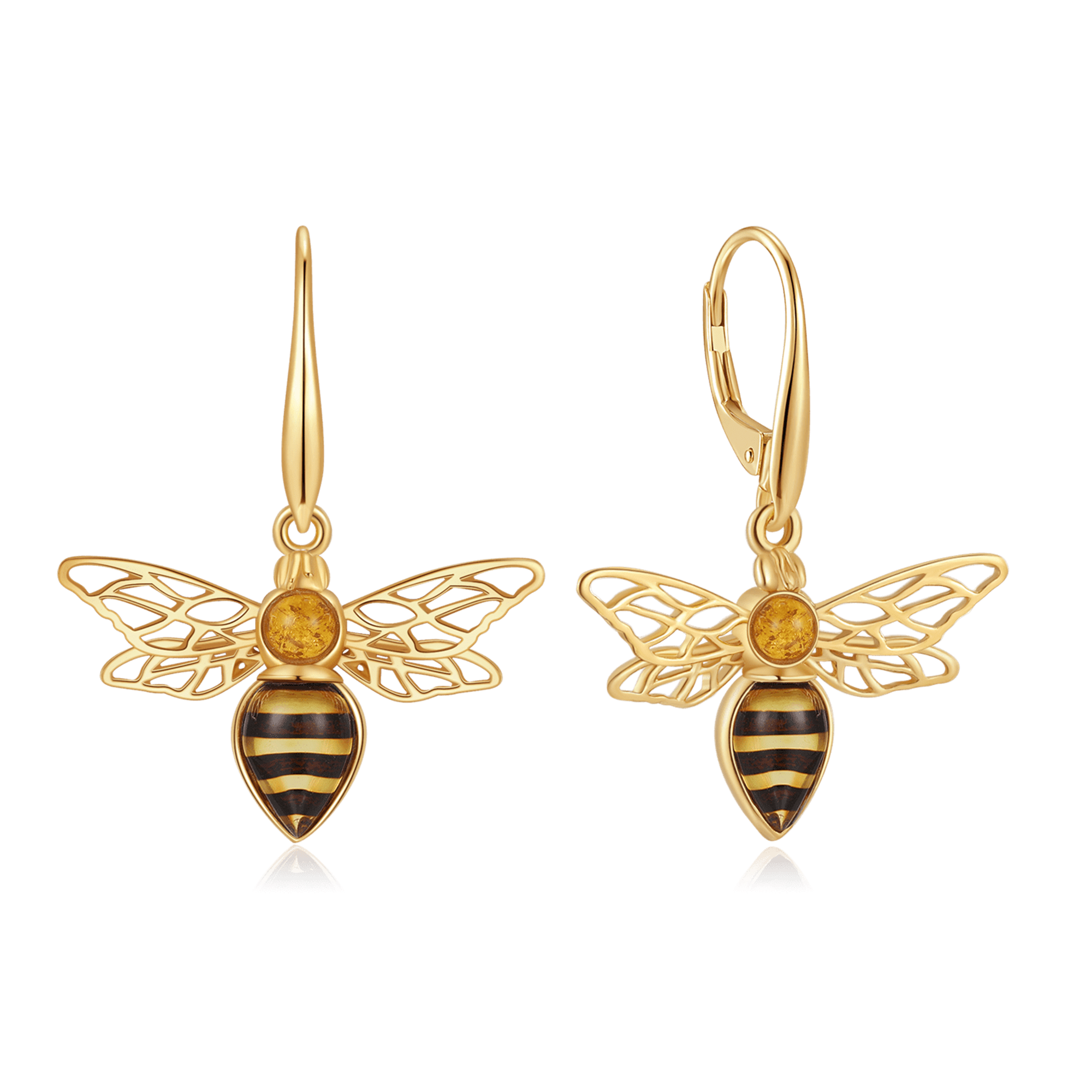 Sølvforgyldt ørehængere bi med rav.