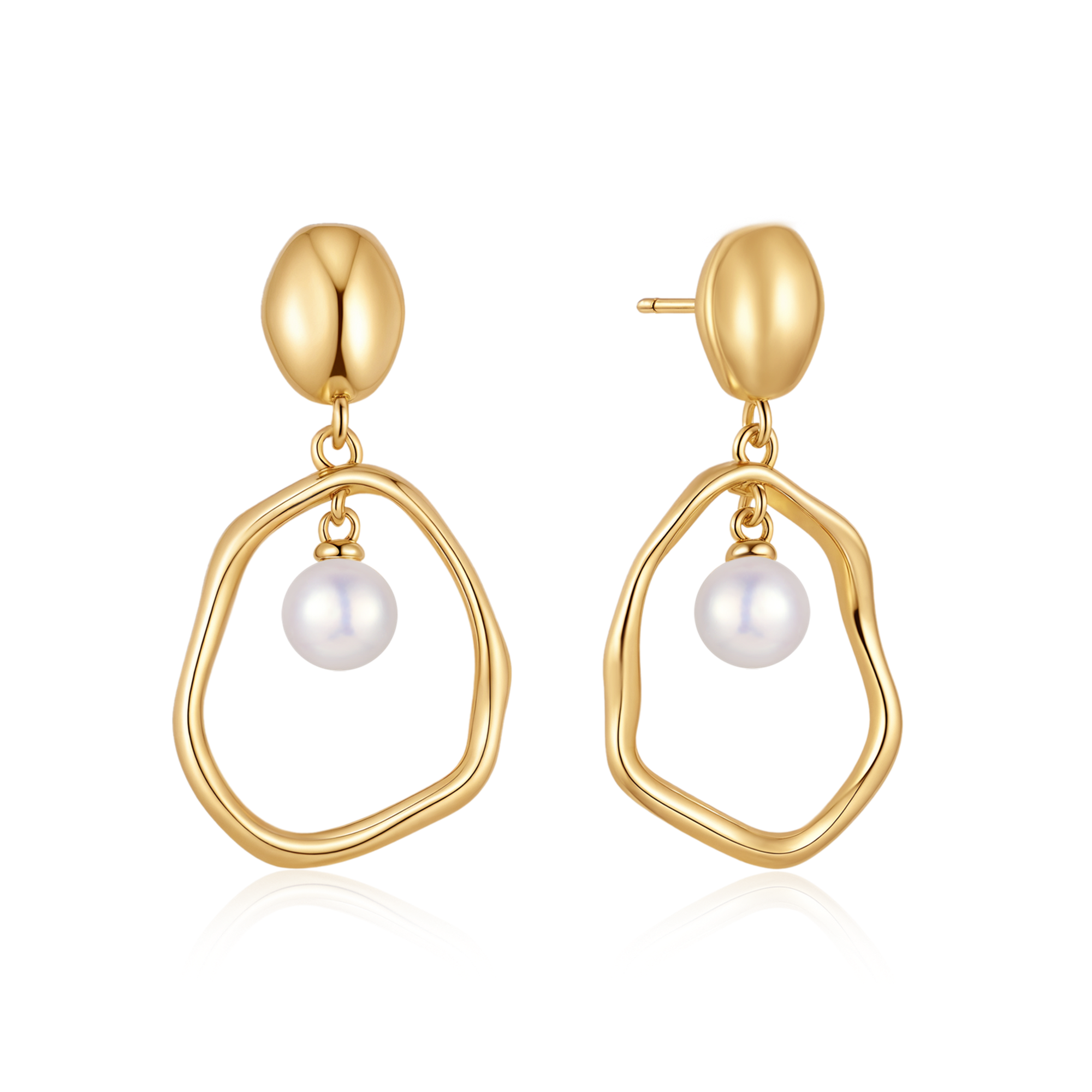 Sølvforgyldt ørehænger plade med oval og ferskvandsperle