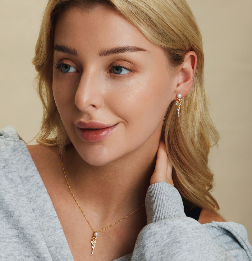 Sølvforgyldt ørehænger ferskvandsperle med aflang zigzag og syntetiske cubic zirconia.