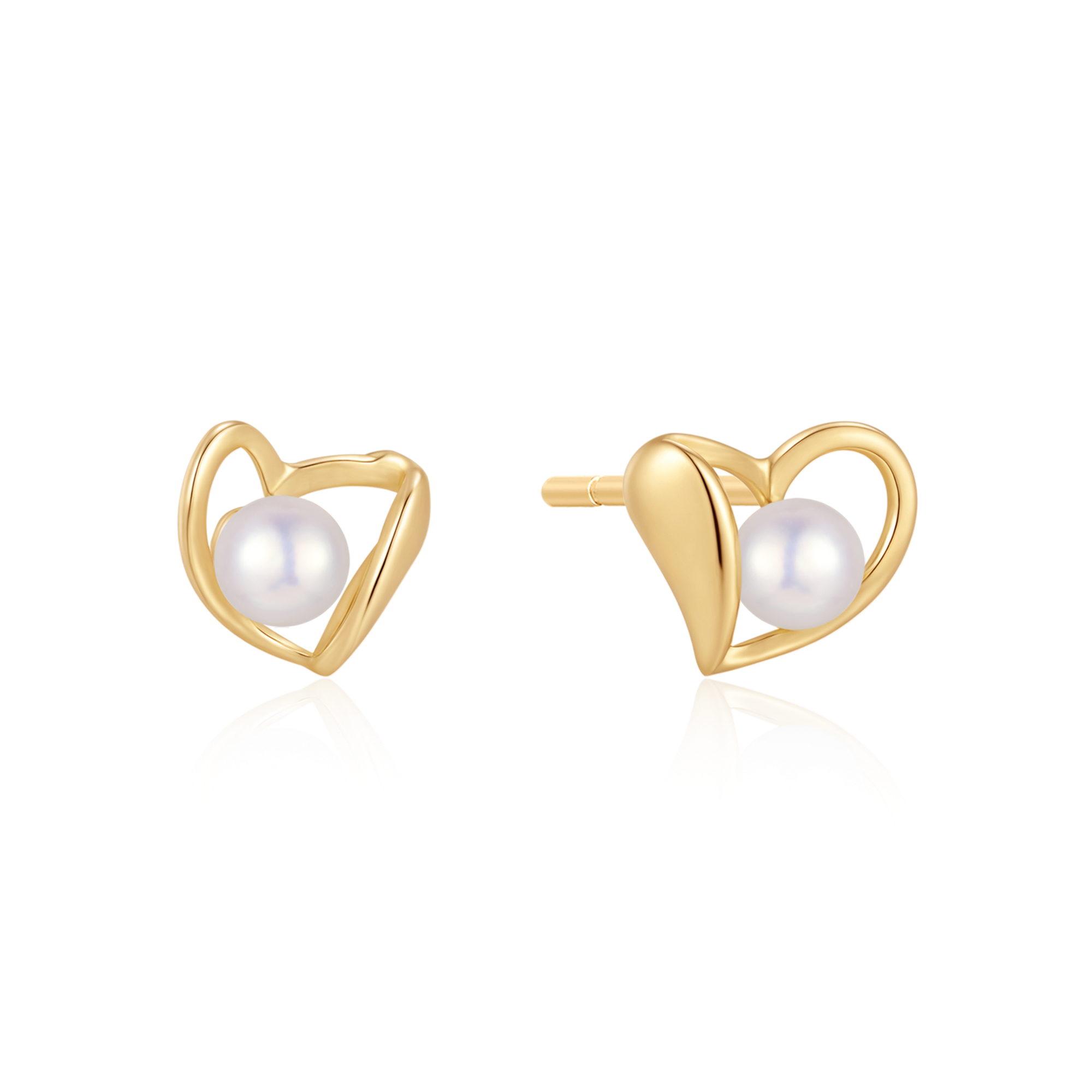Sølvforgyldt ørestikker hjerte med ferskvandsperle.