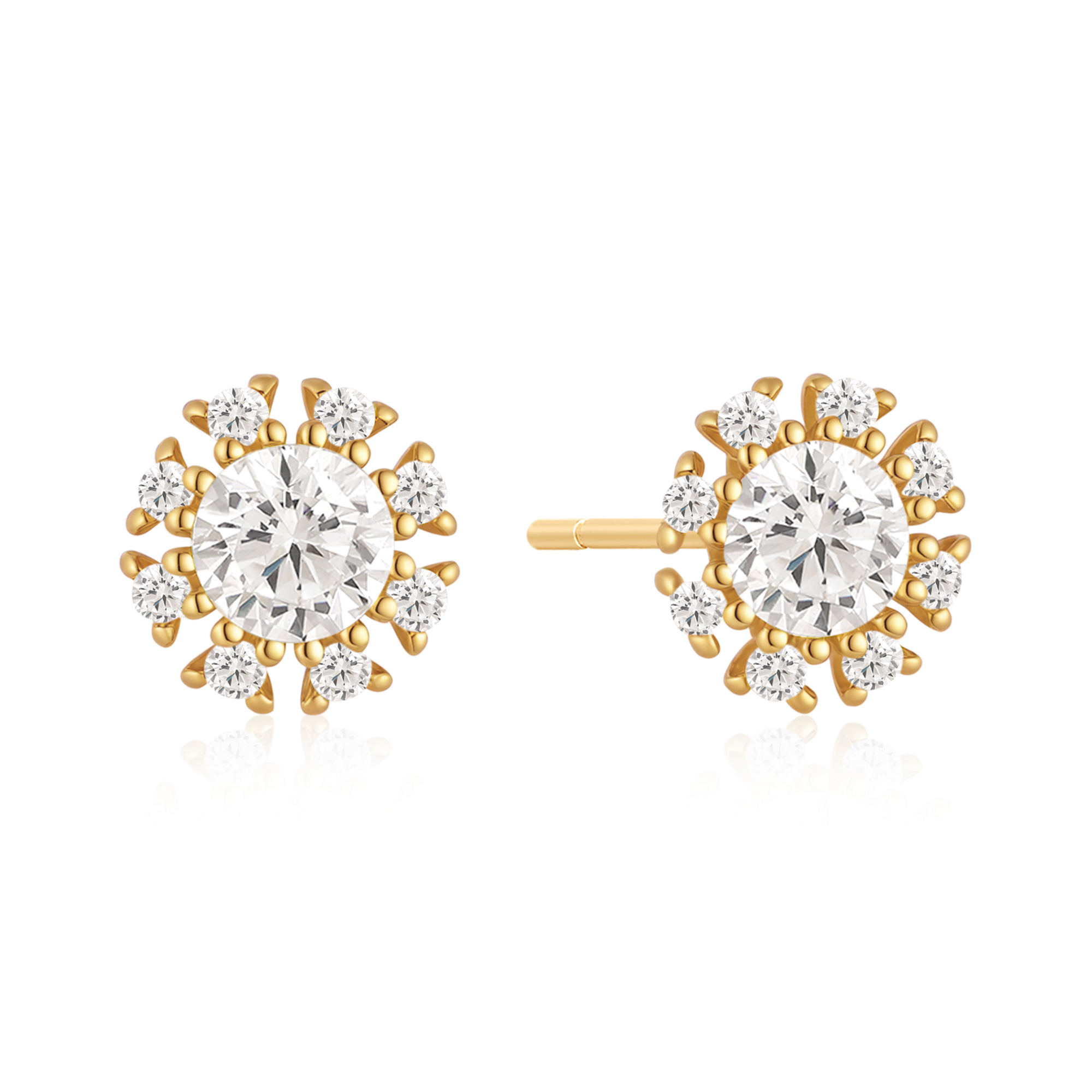 Sølvforgyldt ørestikker blomst med syntetiske cubic zirconia.
