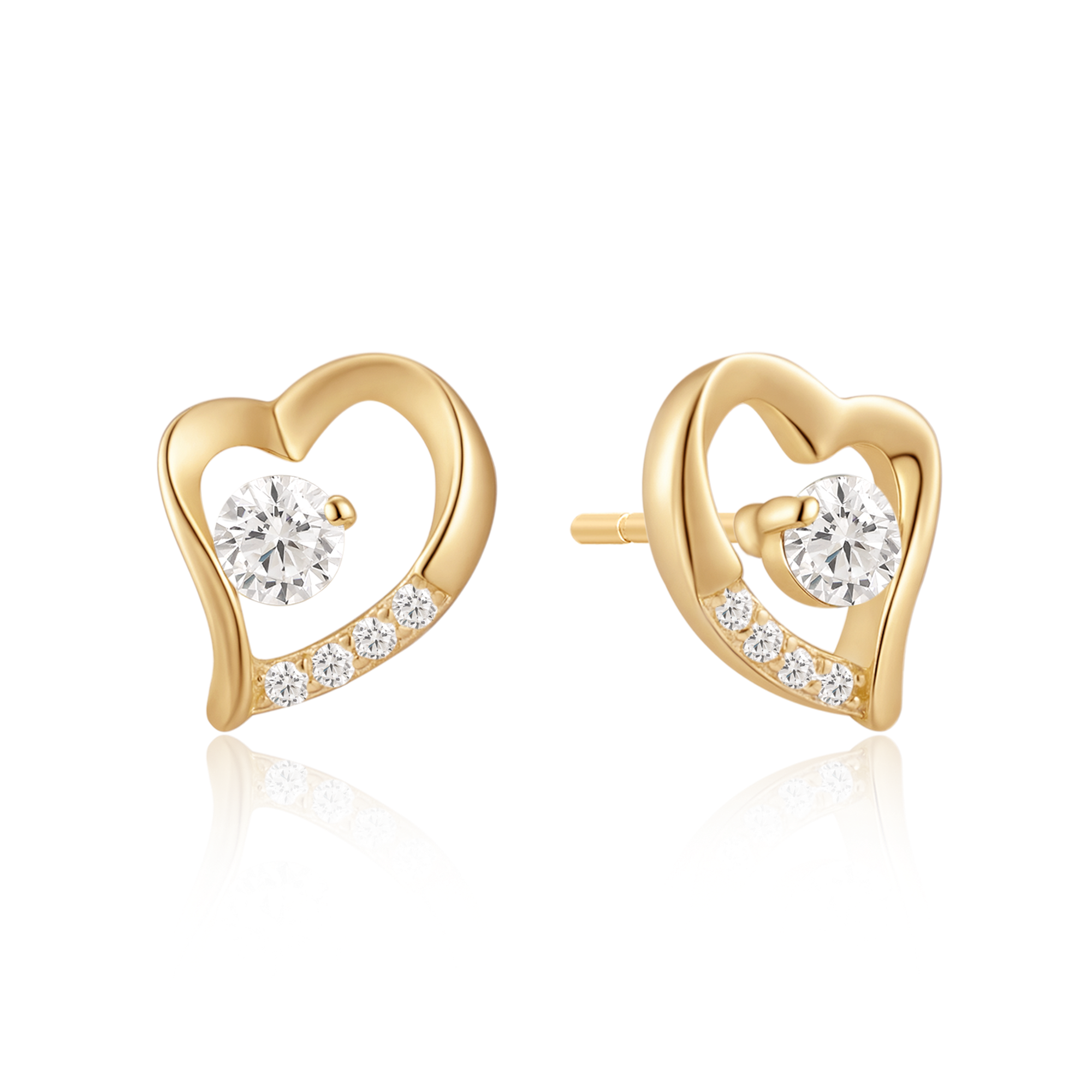 Sølvforgyldt ørestikker skæv hjerte med syntetiske cubic zirconia.