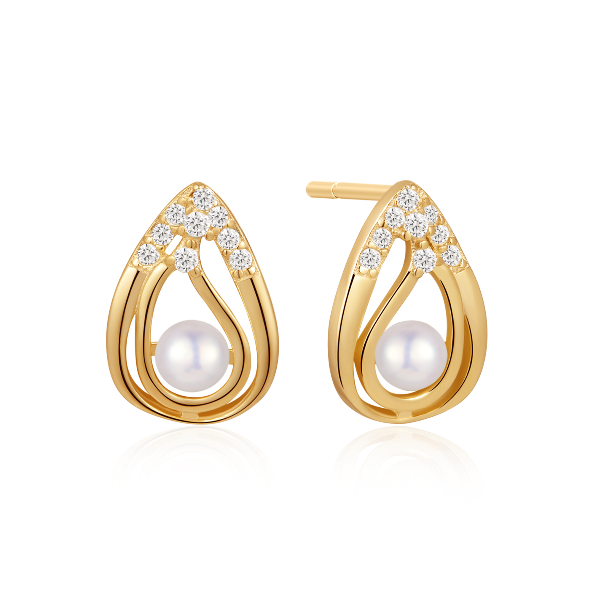 Sølvforgyldt ørestikker dobbelt dråbe med syntetiske cubic zirconia og ferskvandsperle.