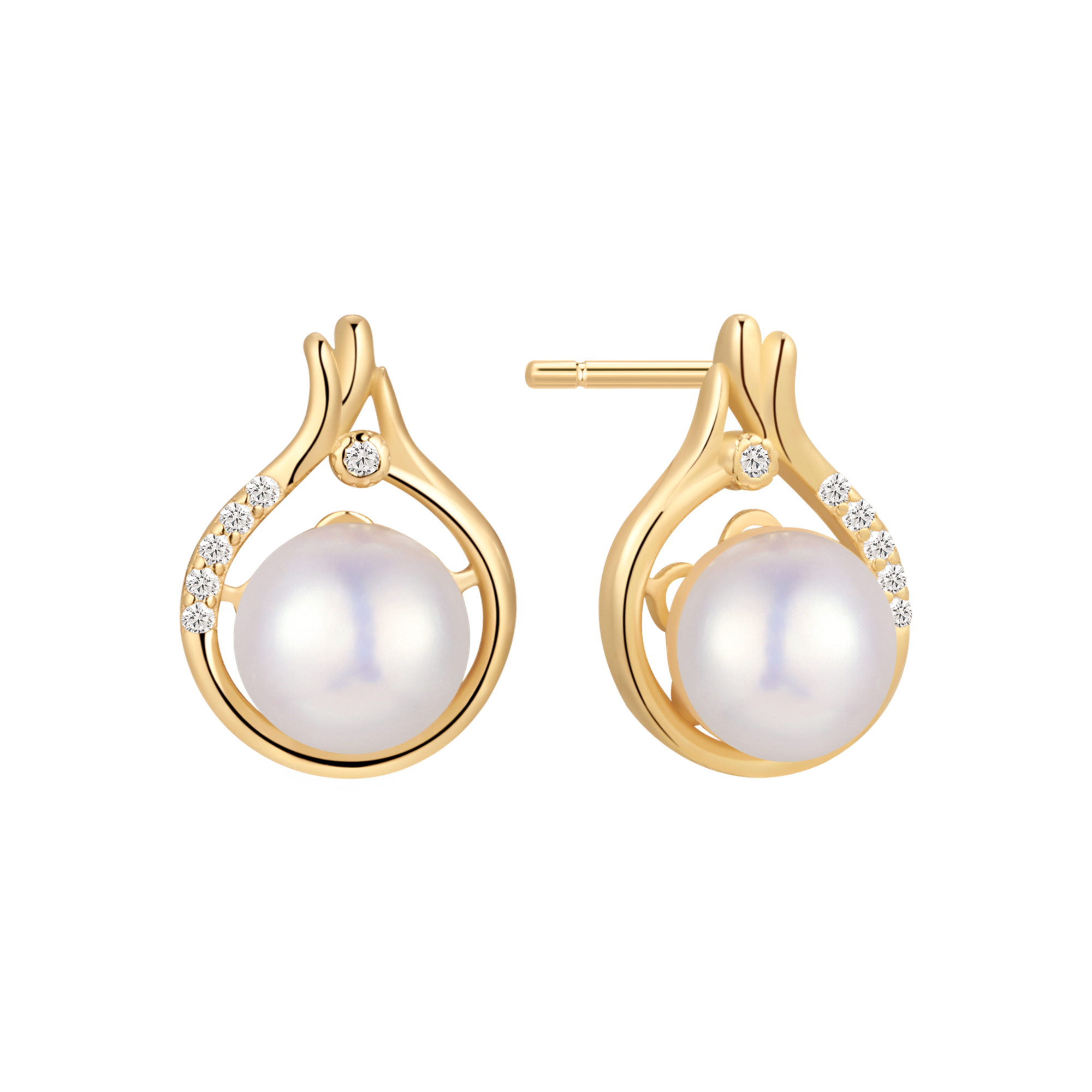 Sølvforgyldt ørestikker dråbe med syntetiske cubic zirconia og ferskvandsperle.