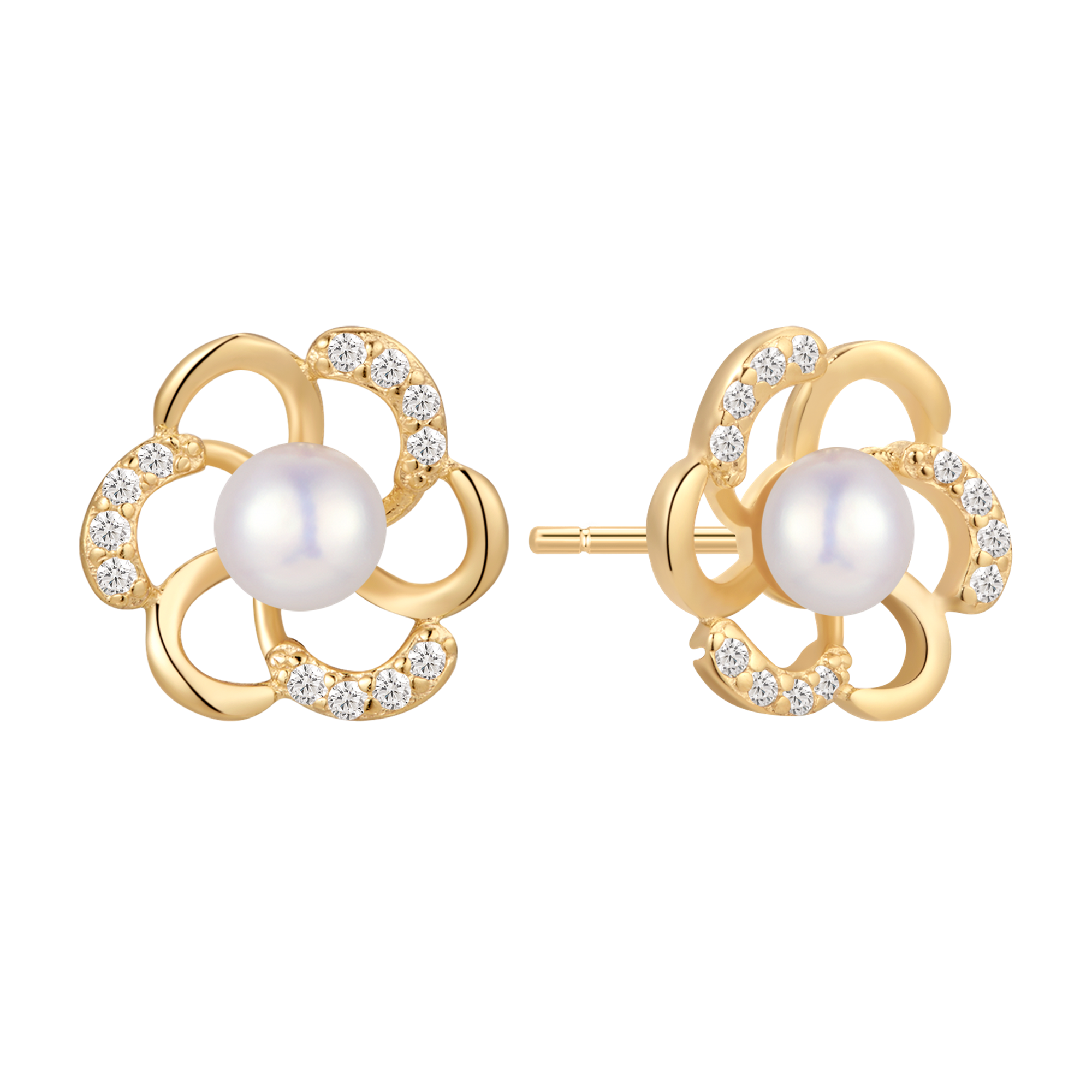 Sølvforgyldt ørestikker blomst med syntetiske cubic zirconia og ferskvandsperle.