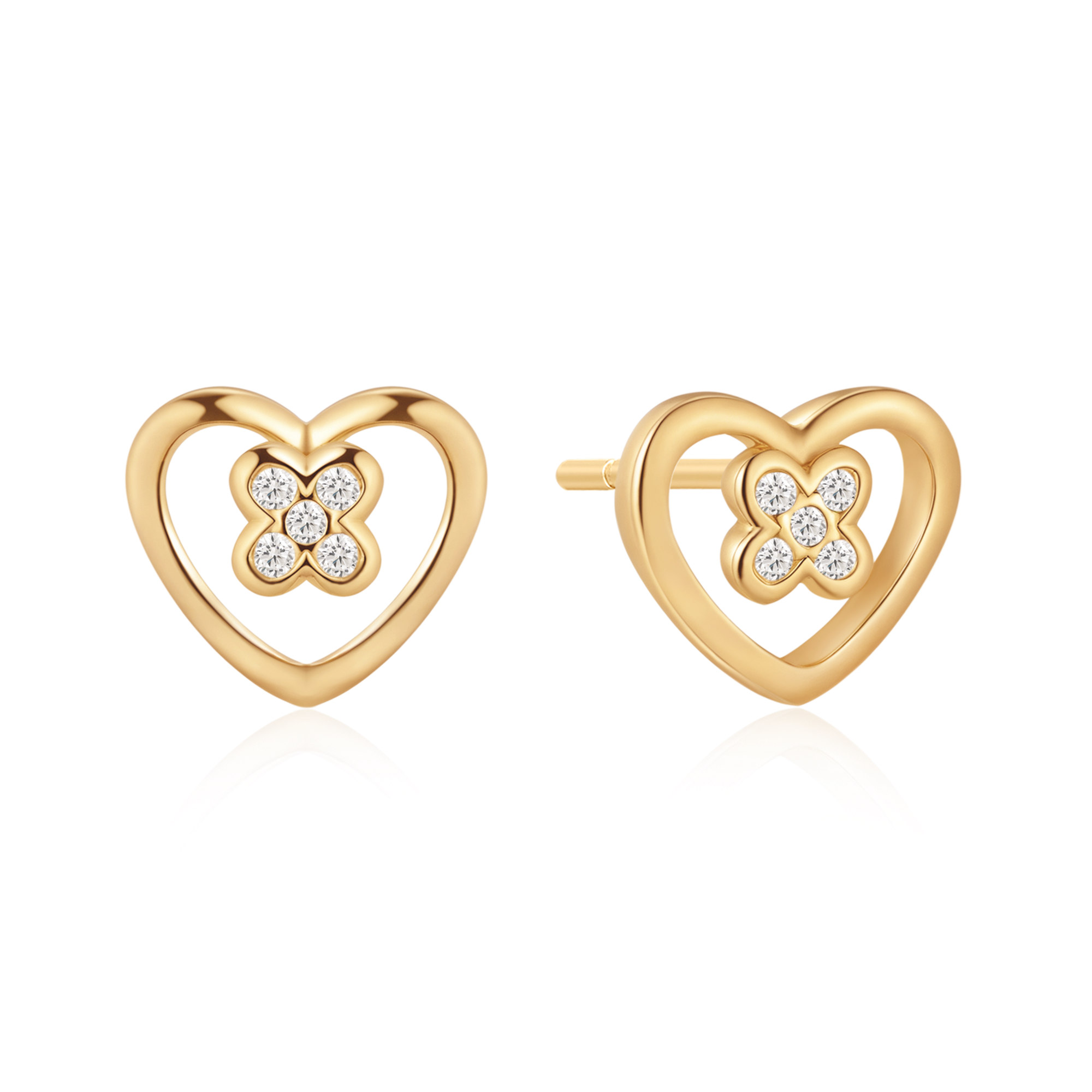 Sølvforgyldt ørestikker hjerte med blomst og syntetisk cubic zirconia.
