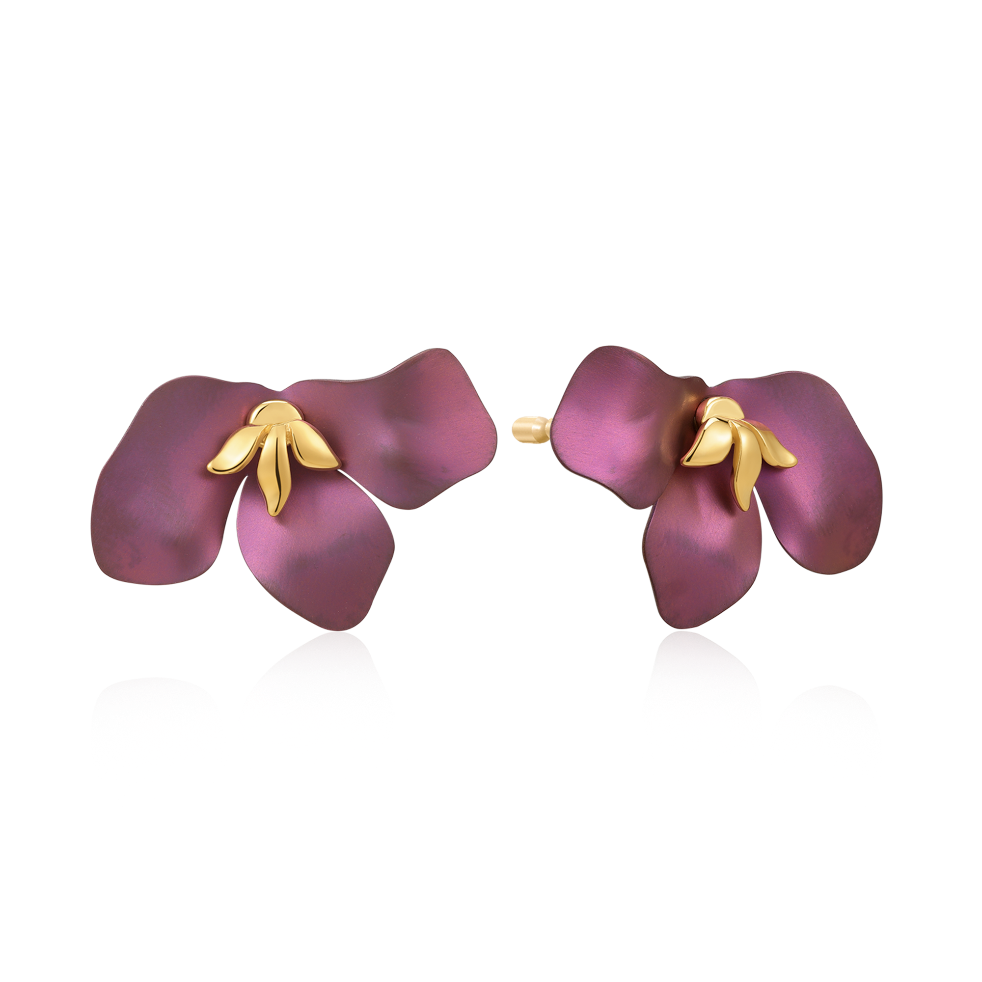 Sølvforgyldt ørestikker blomst i pink titanium.