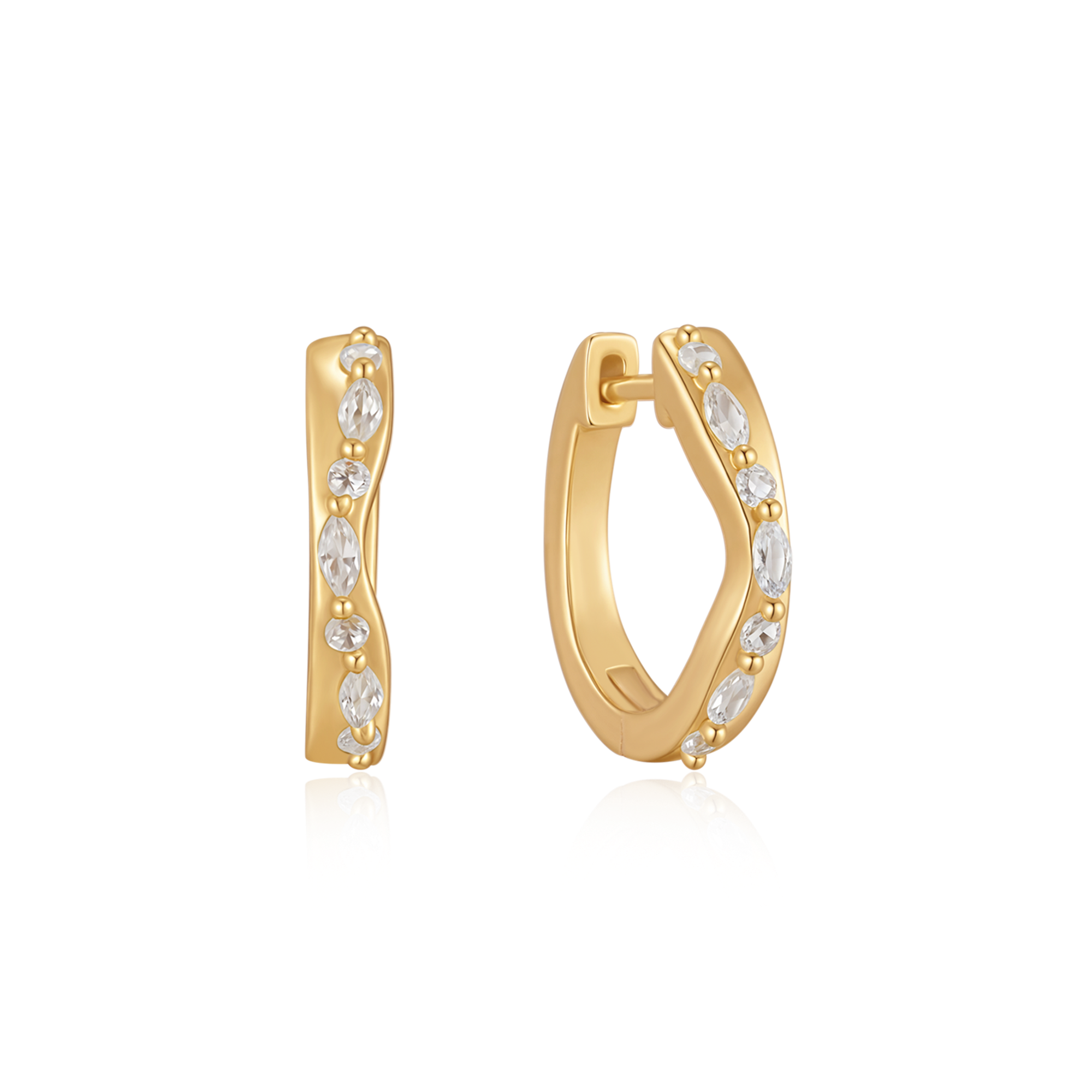Sølvforgyldt ørestikker cirkel med bue og syntetiske cubic zirconia.