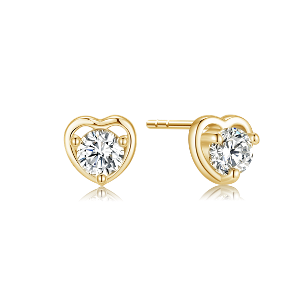 Sølvforgyldt ørestikker hjerte med en syntetisk cubic zirconia.