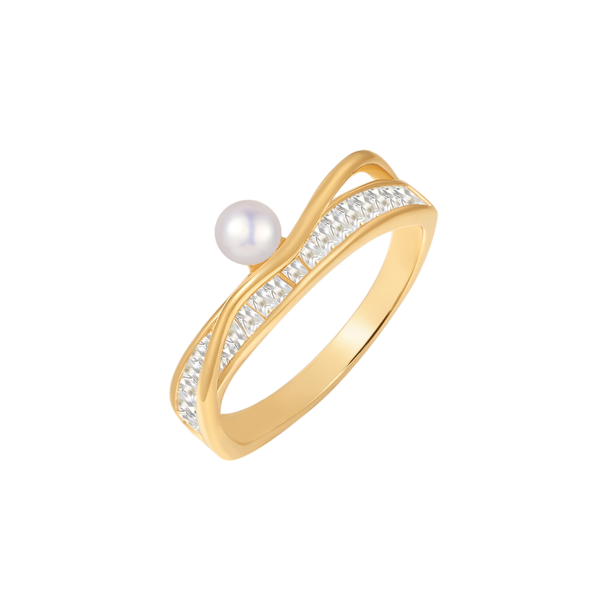 Sølvforgyldt ring evighedstegn med ferskvandsperle og syntetisk cubic zirconia på den ene skinne.