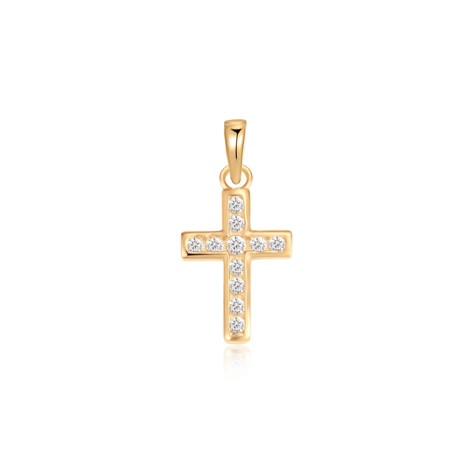 Sølvforgyldt vedhæng kors med syntetiske cubic zirconia.