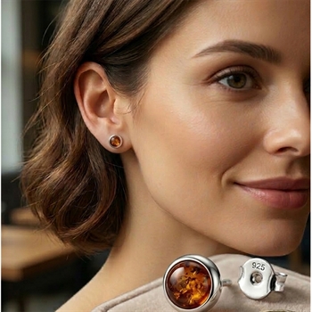 runder Bernstein in schöner Fassung, Durchmesser: 8 mm
