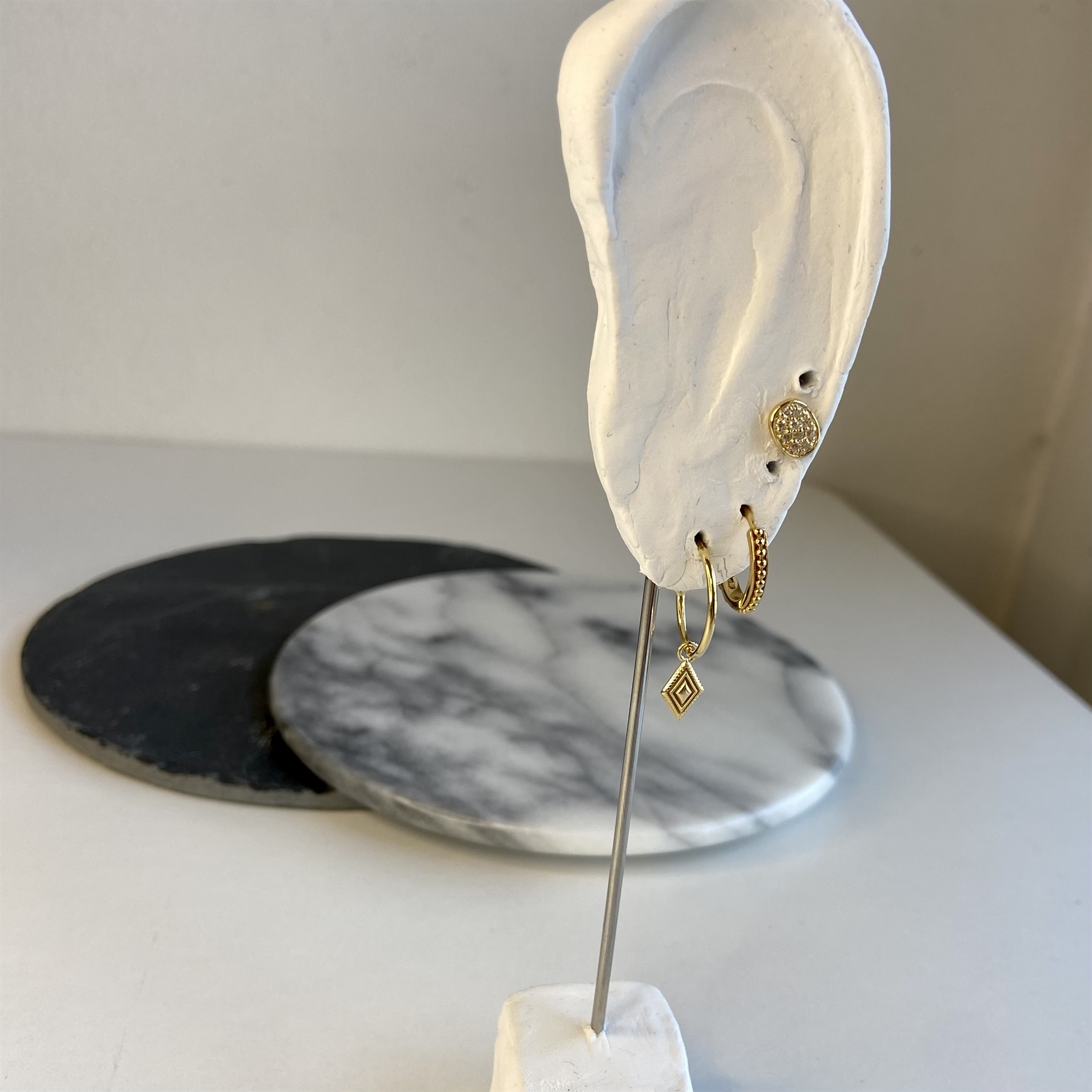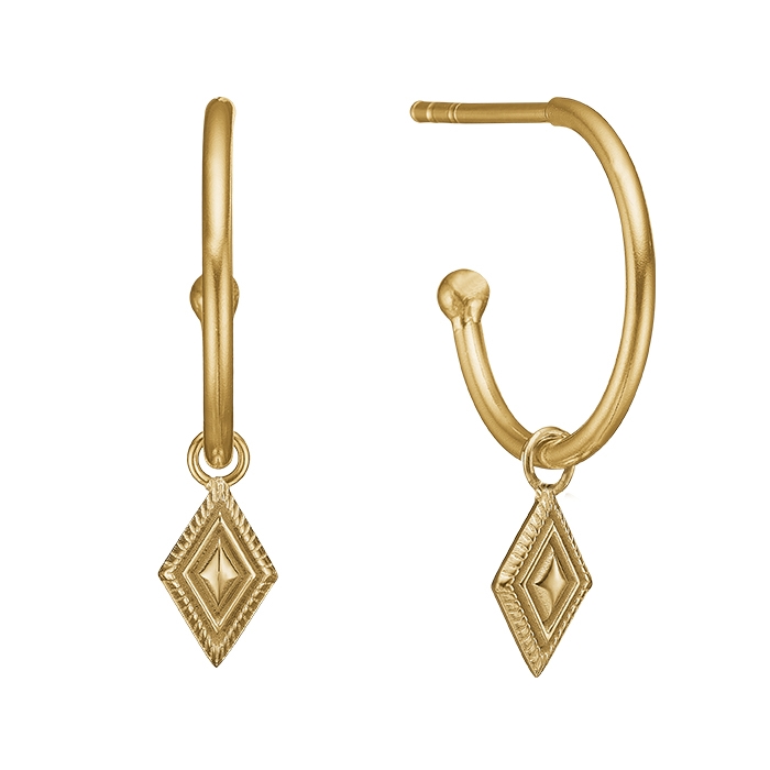 Schöne offene Creolen mit kleinen Rhombenanhängern. , Ø 17,5 mm Raute 9 mm